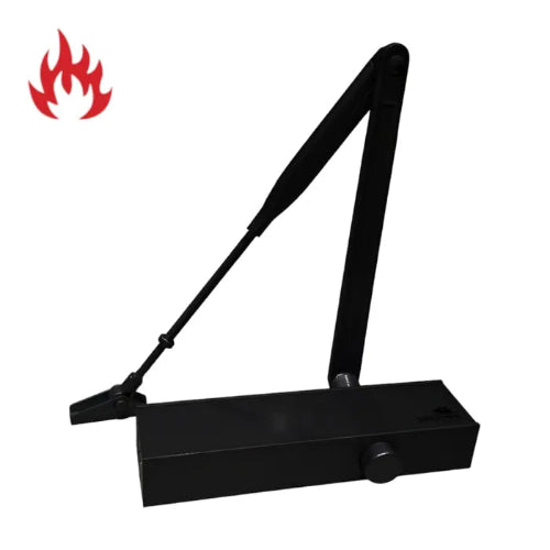 A high-performance rack & pinion door closer adjustable for size 2 to 4 doors — ideal for widths up to 1100 mm and weights to approx. 80 kg. It’s non-handed (works for left or right, inward or outward swing), features adjustable back-check, closing and latching speeds (180°→15°, then 15°→0°). Fire-tested to 4 hours under AS1905 / AS1530 standards and certified to BS EN 1154. Premium construction includes anodised aluminium body, heat-treated steel internals, and built-in pressure relief valve for durability. Comes complete with standard arm, parallel-arm bracket and both timber & self-tapping metal fixings.
