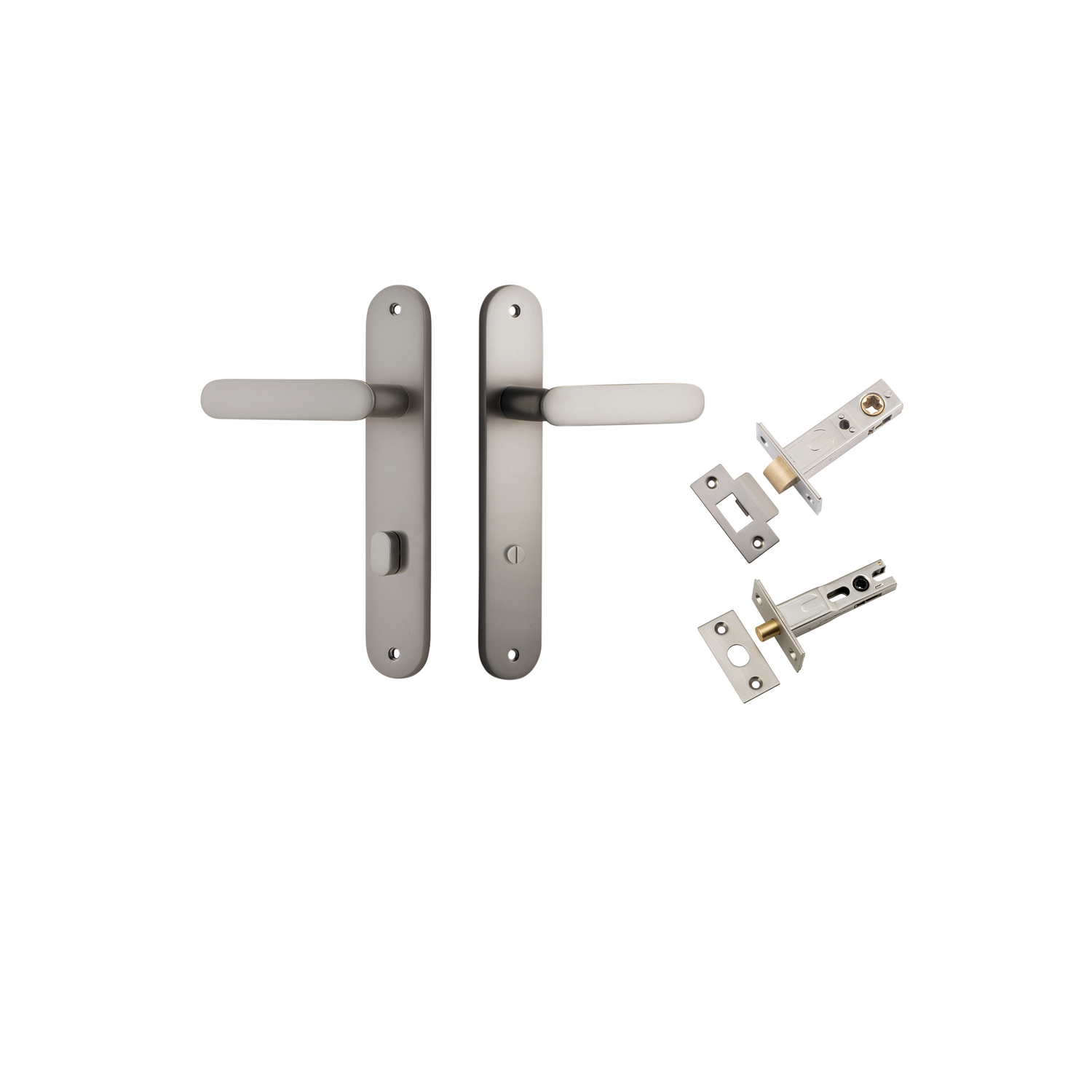 The Iver Bronte Oval Backplate Lever can be purchased as a passage, privacy or entrance kit, which includes all components required for your door to function.