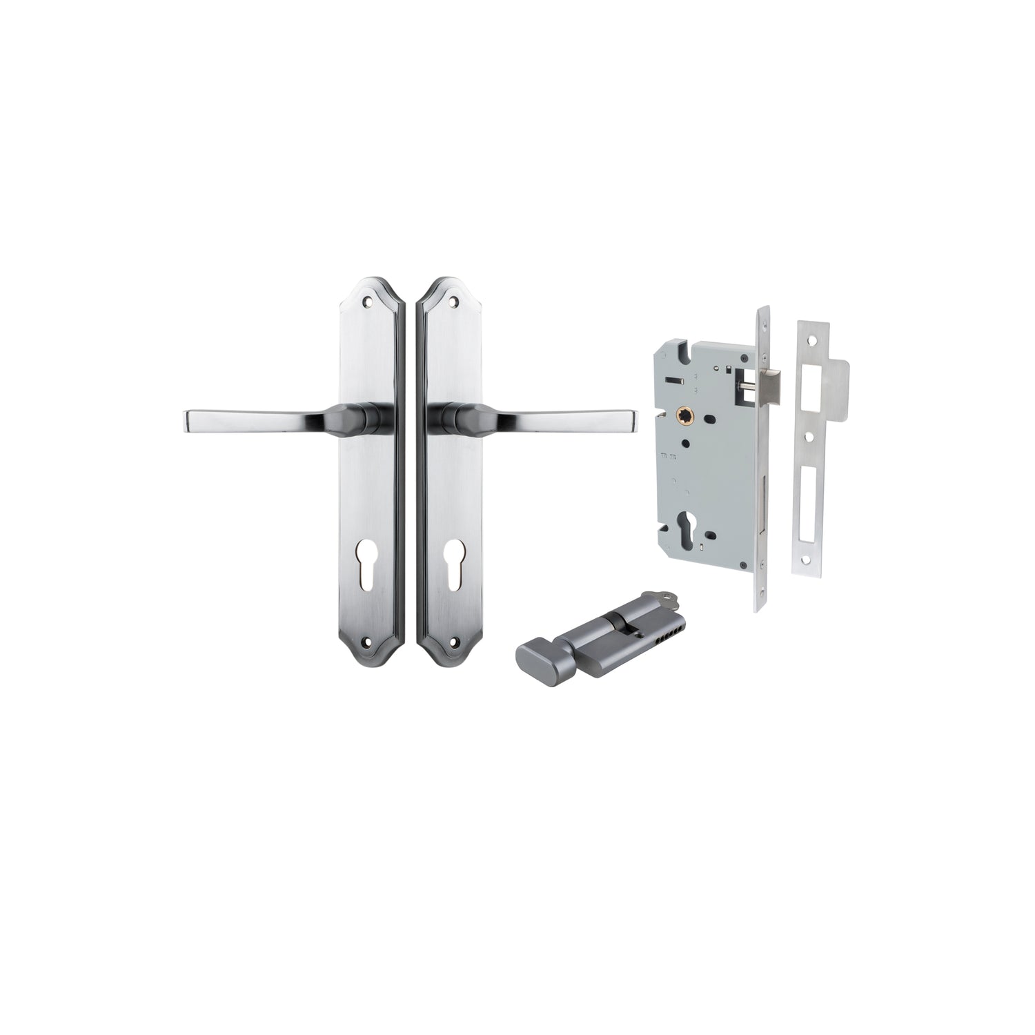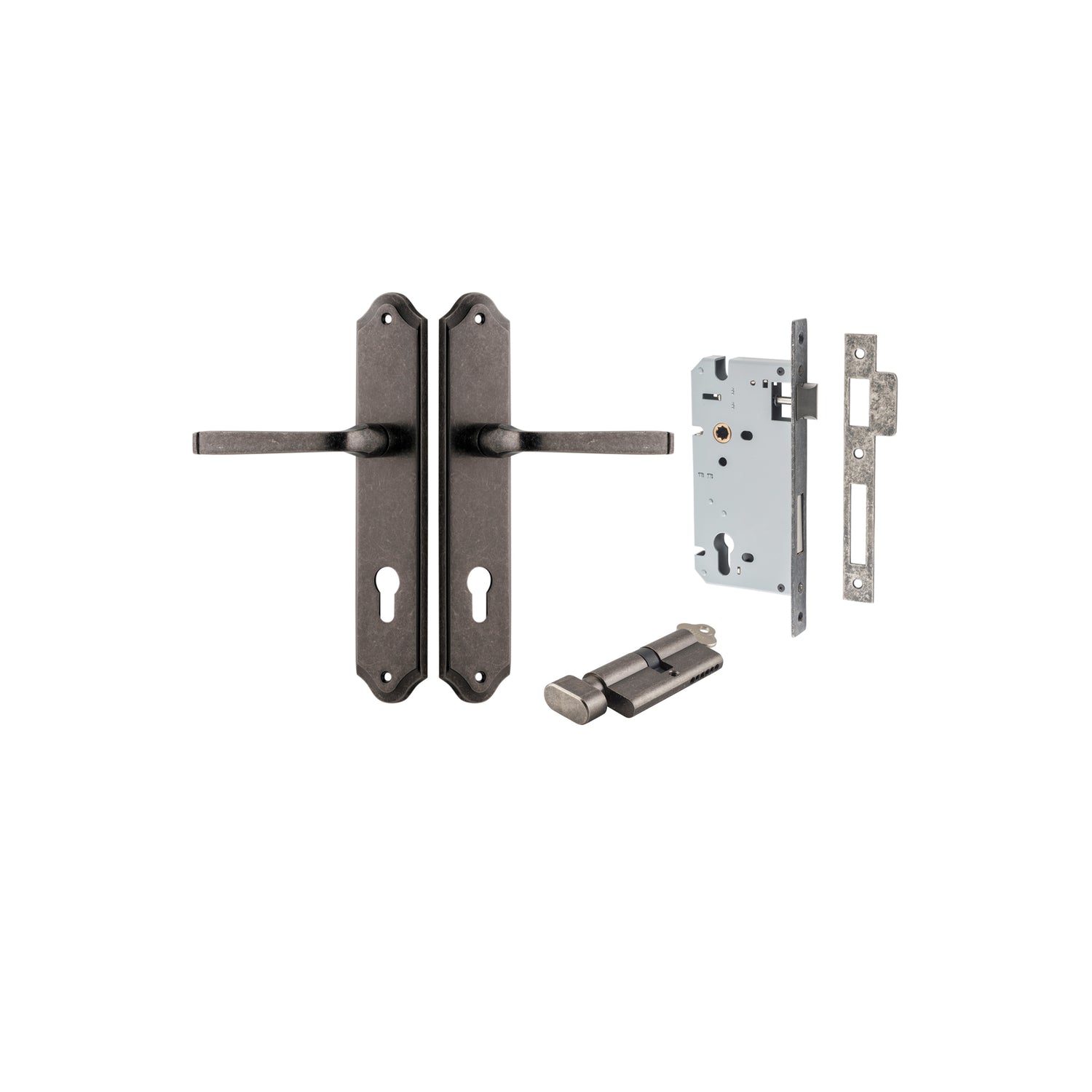 - Entrance Set, Key/Turn- Comes with 2 handles, Long body mortice lock, 2 x cylinder escutcheons (Cover plates for cylinder) & Euro Cylinder with Turnsnib on the inside