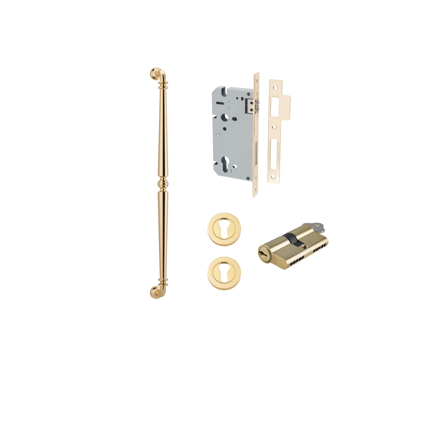 This listing is for the Entrance Kit — everything you need to fit a functioning, lockable front door in one box. The pull handle is sold individually; if your door requires a handle on both sides, you'll need to add a second Sarlat pull handle separately - Click here