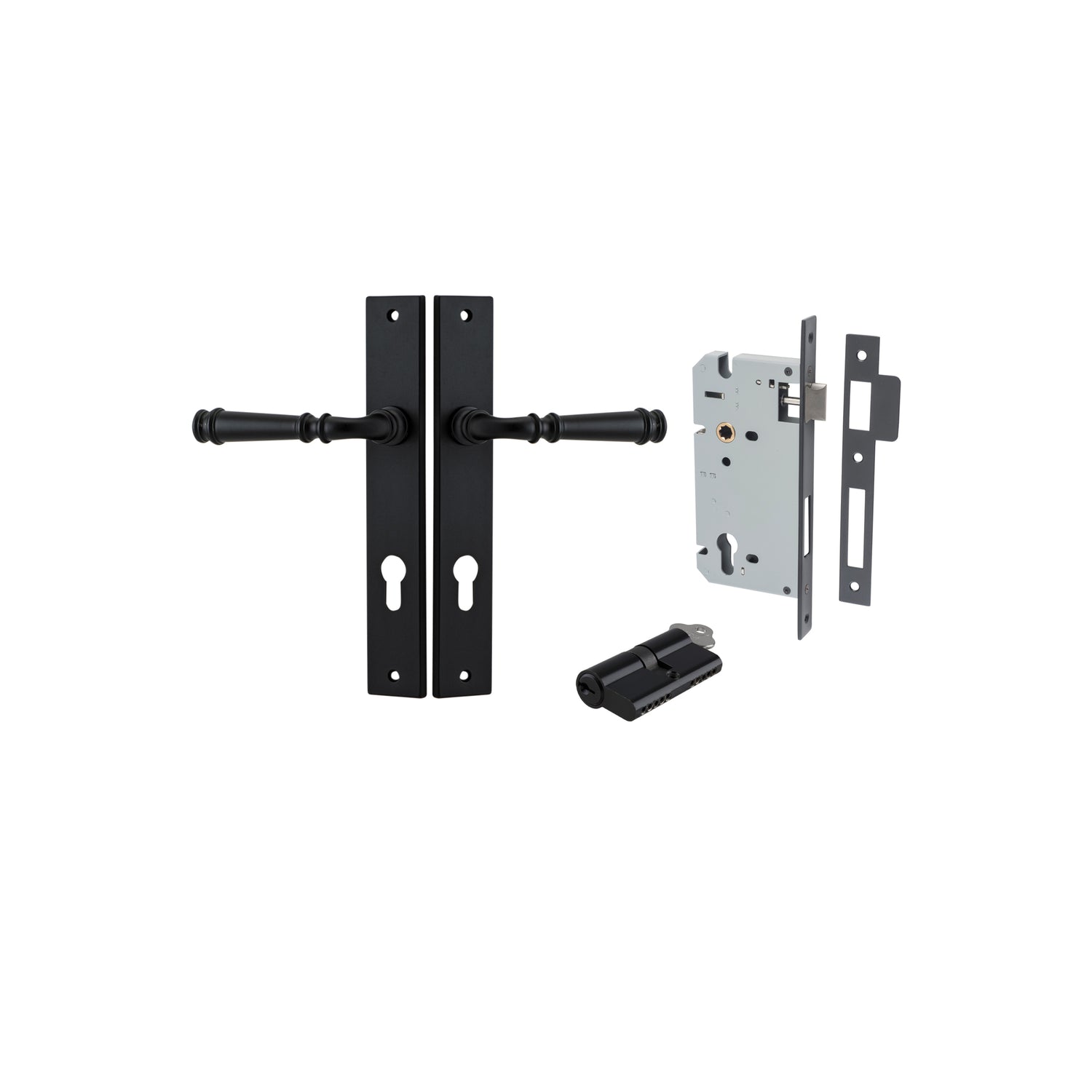 • Entrance Set, Key/Turn- Comes with 2 handles, Long body mortice lock, 2 x cylinder escutcheons (Cover plates for cylinder) & Euro Cylinder with Turnsnib on the inside